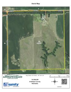 154.39 +/- Acre Combination farm with multiple outbuildings to be offered at Referee’s Sale on January 24th, 2025 at 10:00 AM at the Neligh American Legion. This farm currently has 67 acres in row crop production and 9.37 acres of dryland alfalfa. Soils are predominantly Crofton-Nora complex and Nora silty clay loam.  FSA reports 151.73 farmland, 109.21 cropland, 121 BPA PLC yield for corn, 37 BPA PLC yield for soybeans, and 42.60 base acres.